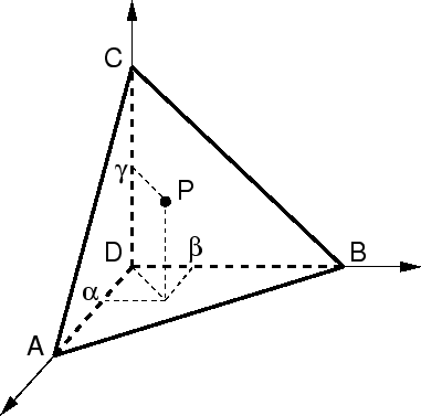 . In a ``regular'' tetrahedron (which has three edges coinciding with the coordinate axes) these correspond to the relative coordinates as indicated in Fig. 6.2.